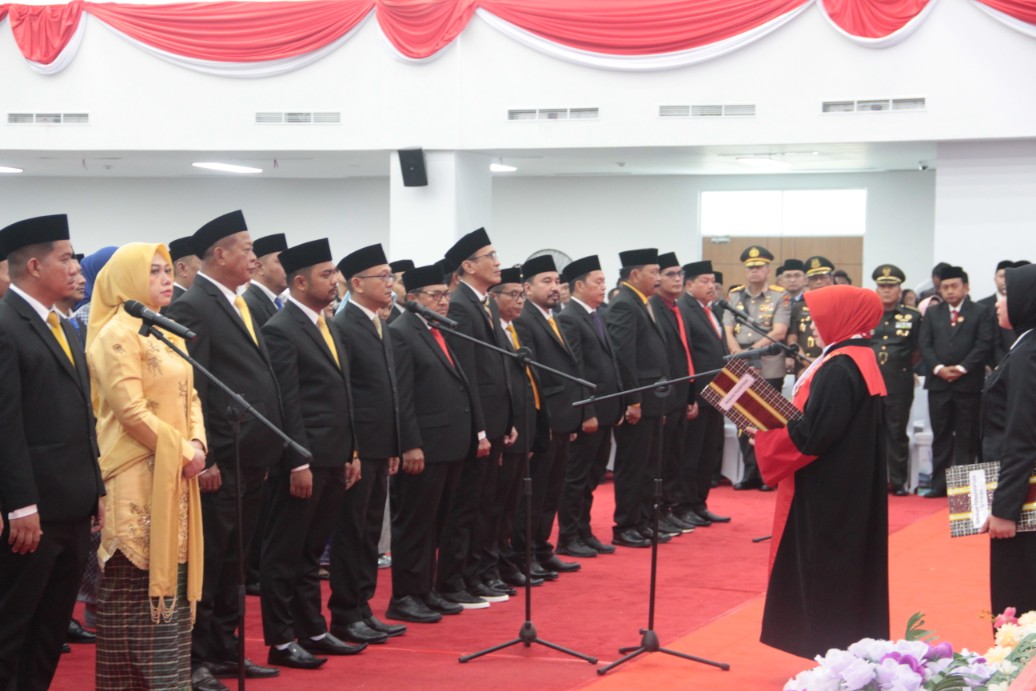 Pelantikan tersebut dipimpin oleh Ketua Pengadilan Tinggi Sulawesi Barat, Dr. Hj. Nirwana, S.H., M.Hum., dan turut dihadiri oleh Penjabat (Pj) Gubernur Sulawesi Barat, Bahtiar Baharuddin, para pimpinan partai politik, serta sejumlah tamu undangan lainnya.