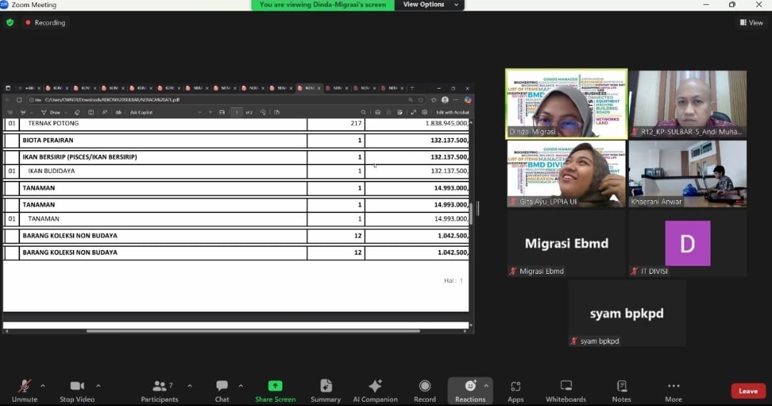 INTUISI.ID, Mamuju – Badan Pengelolaan Keuangan dan Pendapatan Daerah (BPKPD) Provinsi Sulawesi Barat (Sulbar) terus memperkuat tata kelola aset daerah melalui proses migrasi data dari aplikasi SIMDA BMD ke SIPD BMD. Sebagai langkah teknis, BPKPD Sulbar bersama Lembaga Pengkajian dan Pengembangan Informasi Administrasi Universitas Indonesia (LPPIA-UI) melaksanakan rekonsiliasi migrasi data secara virtual melalui aplikasi Zoom Meeting, Kamis (21/8/2025).