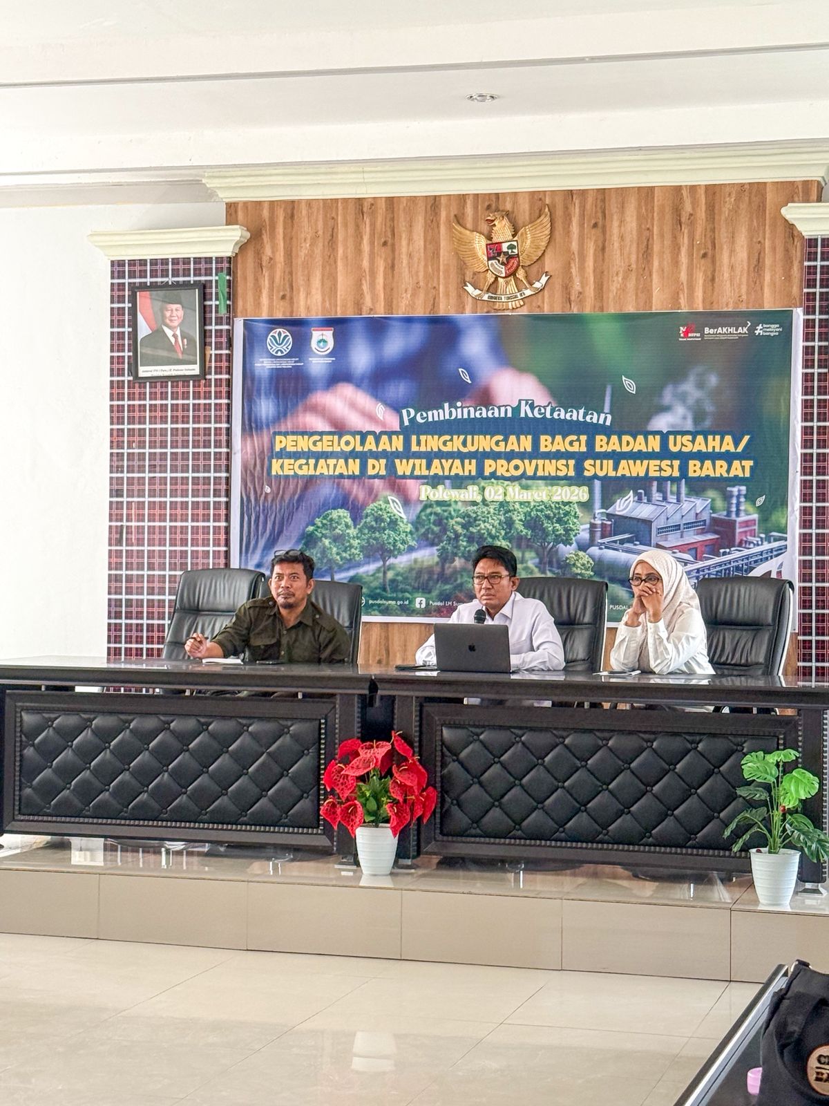 Turut hadir sebagai narasumber Kepala Pusat Pengendalian Lingkungan Hidup Sulawesi dan Maluku (Pusdal Suma), Asri Rasul, yang memberikan penguatan materi terkait pembinaan ketaatan badan usaha serta arah kebijakan pengendalian lingkungan hidup di wilayah Sulawesi dan Maluku. Paparan yang disampaikan menekankan pentingnya kepatuhan terhadap dokumen dan persetujuan lingkungan, pelaporan berkala, serta pengelolaan limbah dan pengendalian pencemaran secara terukur.