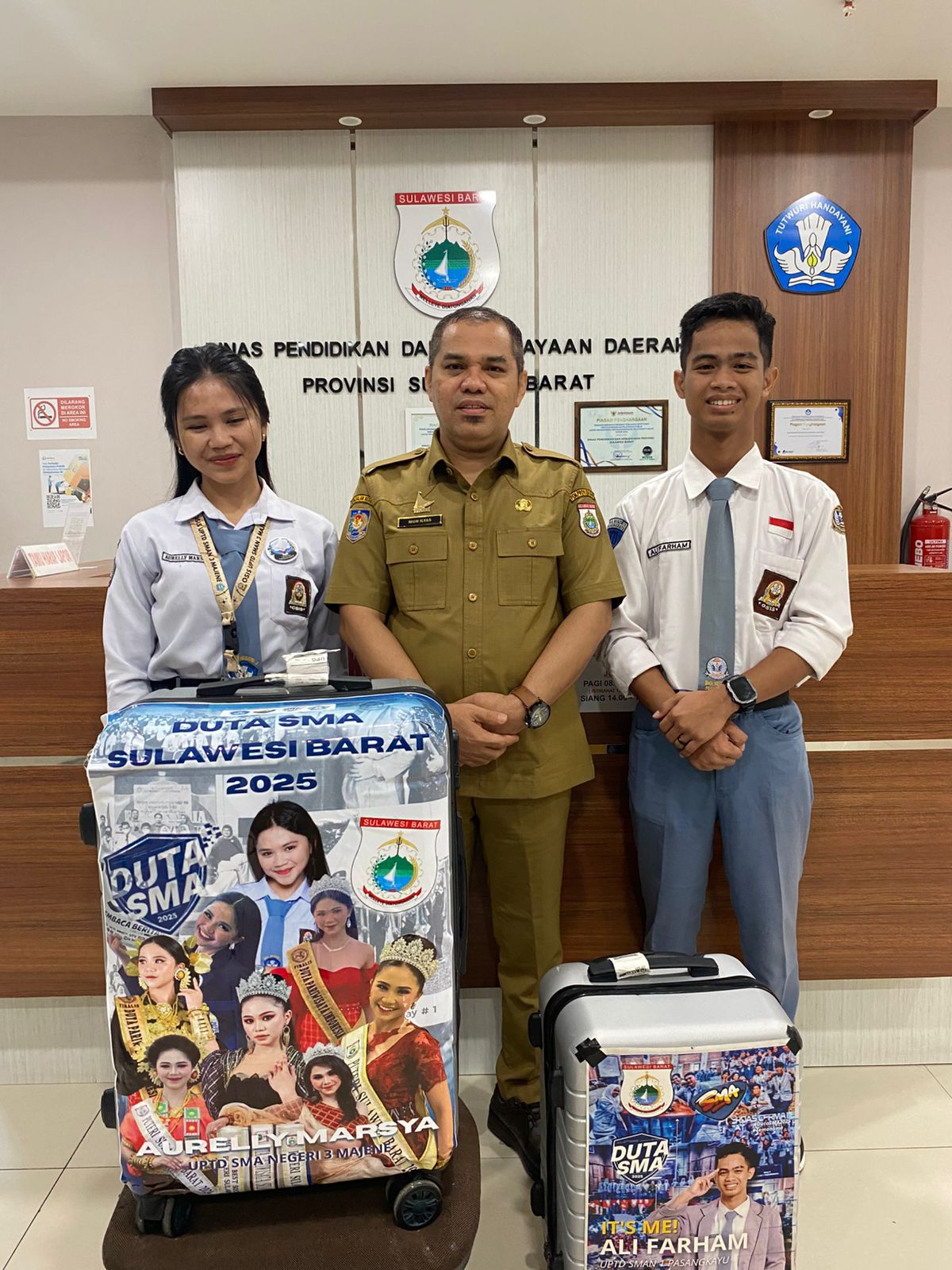 INTUISI.ID, Mamuju — Dinas Pendidikan dan Kebudayaan Provinsi Sulawesi Barat memberikan dukungan penuh dan secara resmi, melepas dua siswa sebagai Duta SMA untuk mengikuti ajang lomba tingkat nasional yang akan berlangsung di Bogor, Jawa Barat, pada 5–9 Agustus 2025.