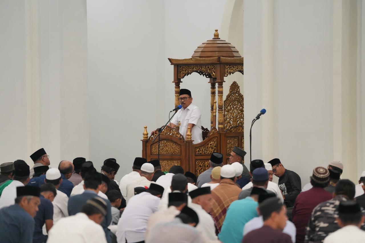 Forkopimda Sulbar bersama masyarakat berkumpul di Masjid Suada Mamuju, Minggu, 31 Agustus 2025 malam. Mereka melantunkan doa istighatsah, memohon agar kondisi bangsa kembali damai.