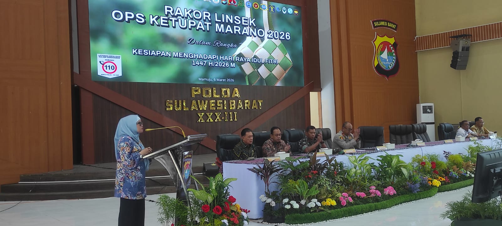 Komitmen tersebut ditunjukkan melalui kehadiran Gubernur Sulawesi Barat, Suhardi Duka, bersama Sekretaris Provinsi Sulbar, Junda Maulana, pada Rapat Koordinasi Lintas Sektor Operasi Ketupat Marano 2026 yang digelar di Aula Marannu Polda Sulawesi Barat, Jumat (6/3/2026).