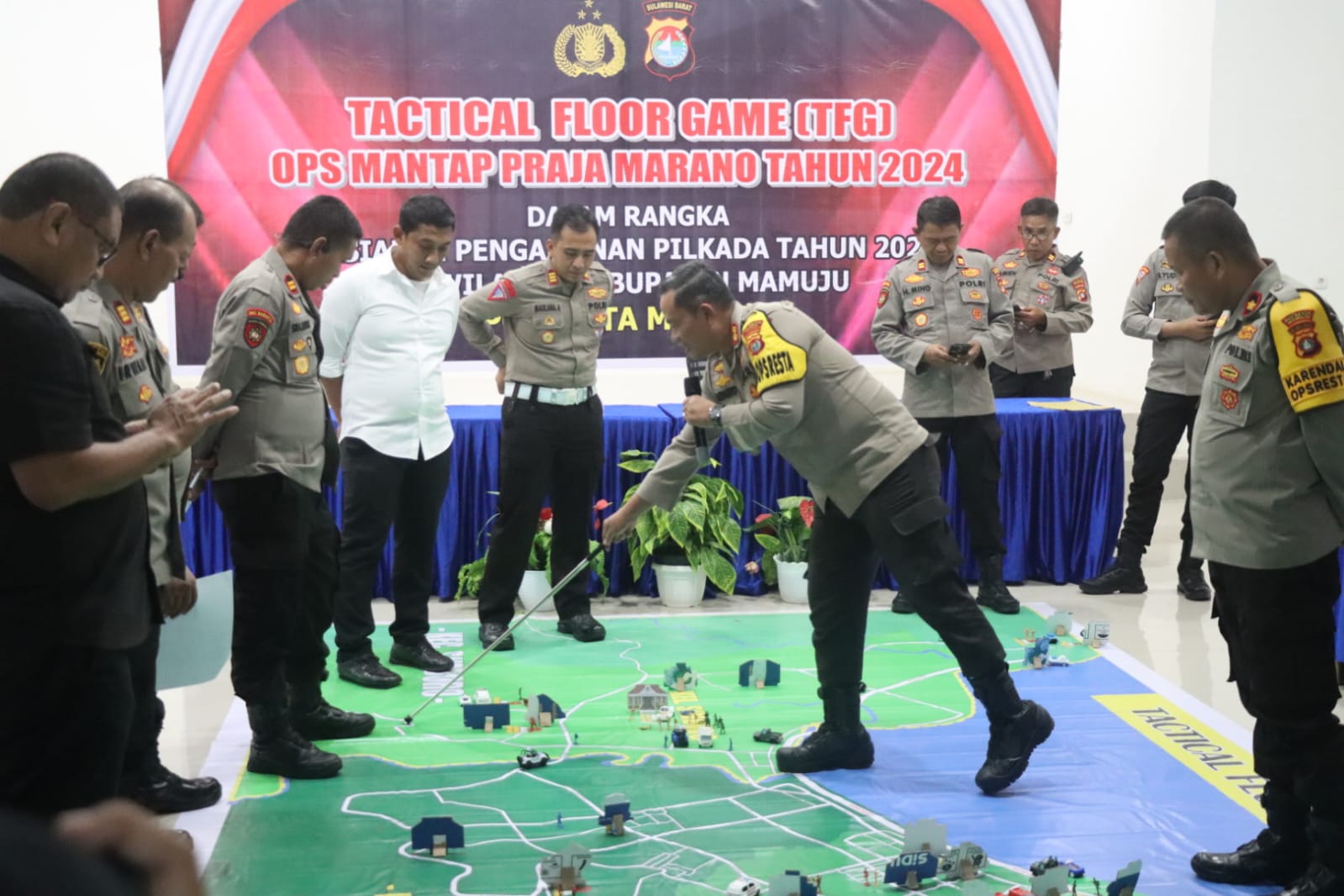 INTUISI.ID – Kepolisian Resor Kota Mamuju menggelar Tactical Floor Game (TFG) Operasi Mantap Praja Marano 2024 jelang pilkada serentak. Kegiatan berlangsung di Aula Wira Satya Jln KS. Tubun Mamuju, Kamis (22/8/2024).