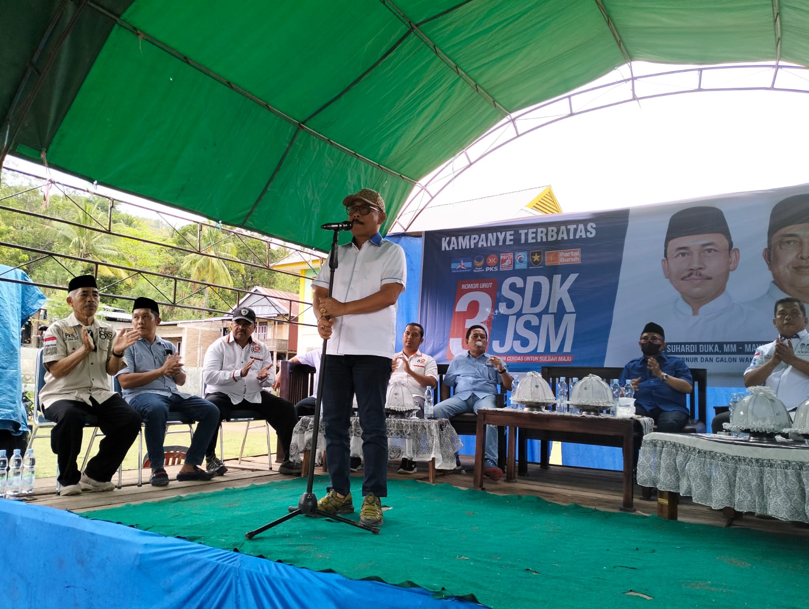INTUISI.ID, Majene – Calon gubernur Provinsi Sulawesi Barat nomor urut 3, Suhardi Duka (SDK), melaksanakan kampanye terbatas di Desa Bonde Utara, Kecamatan Pamboang, Kabupaten Majene, pada 14 Oktober 2024.