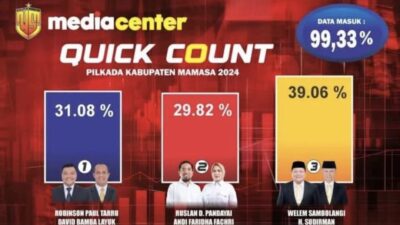 INTUISI.ID, Mamasa – Hasil hitung cepat pada Pemilihan Kepala Daerah (Pilkada) serentak 2024 menempatkan Pasangan…