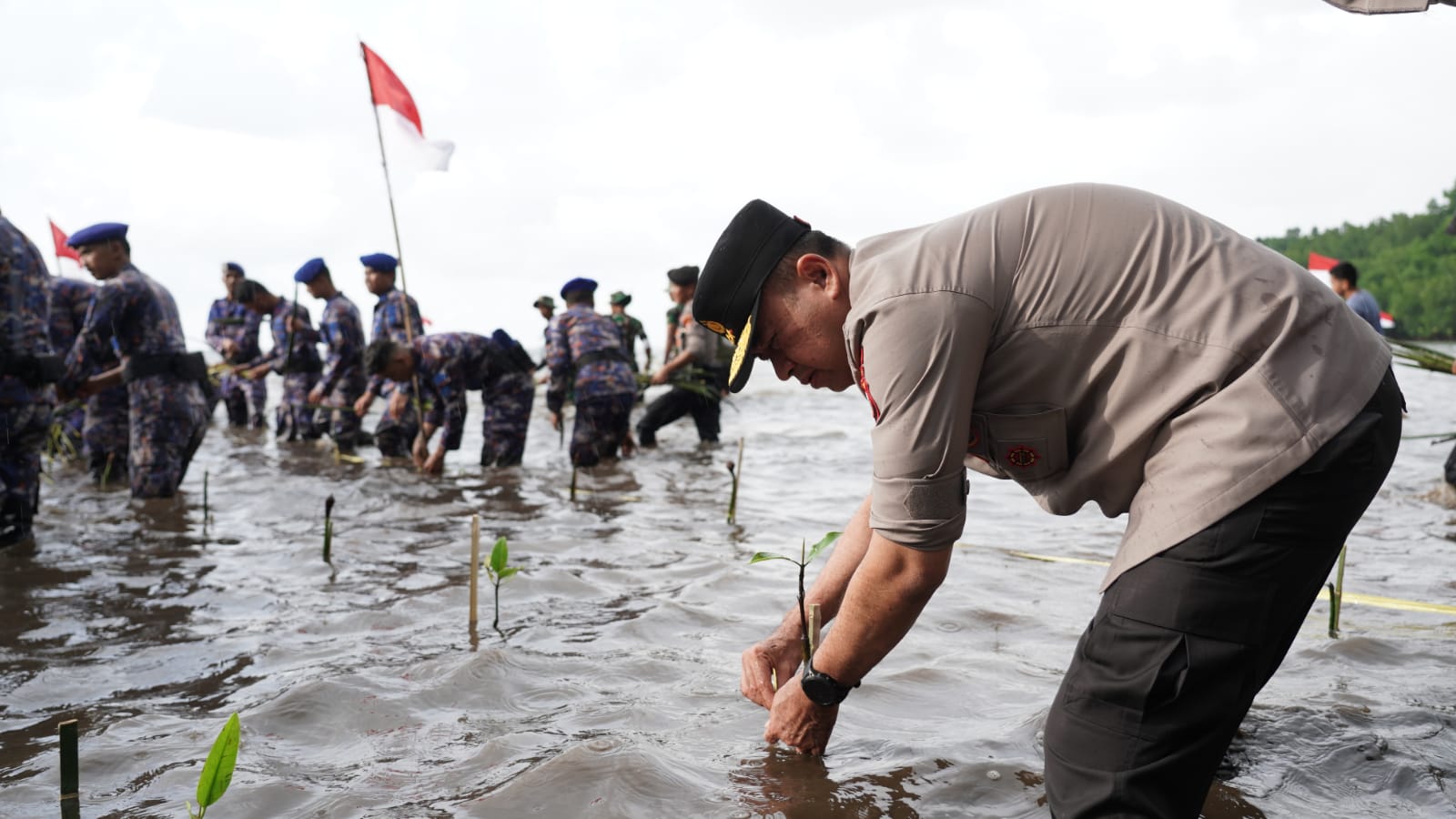 Sebanyak 20.000 bibit pohon mangrove ditanam dalam kegiatan ini. Kapolda dan seluruh undangan yang hadir juga menunjukkan antusiasme tinggi dalam menanam bibit pohon, bahkan tidak ragu untuk masuk ke area pantai.