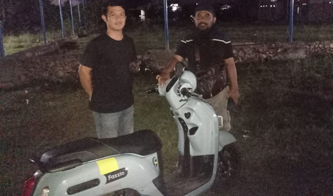 Selanjutnya, setelah dilakukan penyelidikan di sekitar TKP, sekitar pukul 21.30 wita tadi malam, 1 Unit sepeda motor merk yamaha fazzio warna biru yang dilaporkan hilang dicuri berhasil ditemukan di lorong sebelah rumah korban sendiri. Jelas Kasat Reskrim