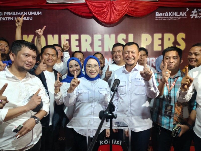 Paslon nomor urut 1, Tina-Yuki melakukan konferensi pers usai pengundian nomor urut Paslon.